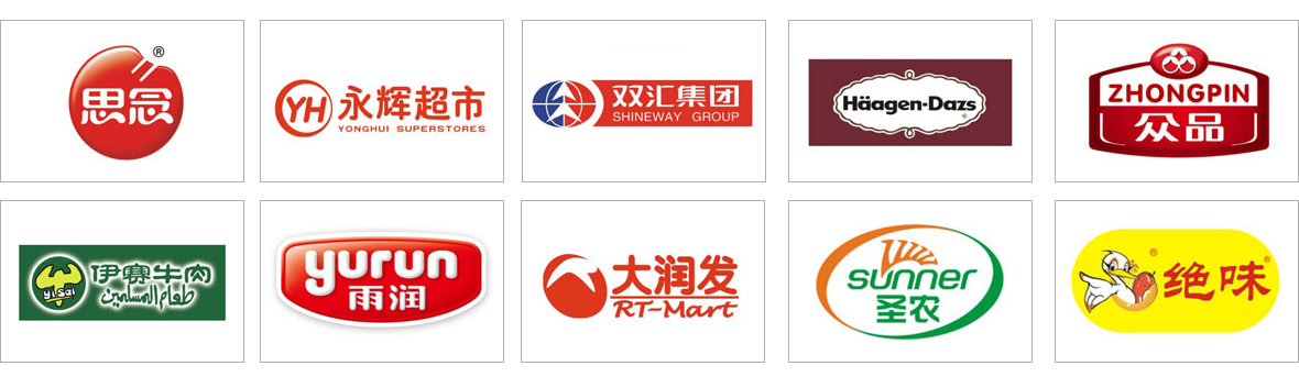 公司憑借著過硬的產品質量,完善的售后服務,贏得廣大用戶的信賴,被國內眾多品牌選用,常年合作的金牌客戶有:思念集團、三全集團、絕味集團、王老吉、哈根達斯、圣農集團、永輝超市等等企業,是速凍食品、冷鮮肉制品、鹵制品、乳制品、水果蔬菜、飲料、冰激淋等選用冷鏈終端設備的理想選擇,為眾多商場、超市、熟食連鎖店、冷鮮肉連鎖店、便利店等設計提供冷鏈配套設備。
